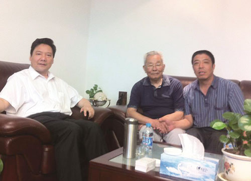 原中國(guó)大學(xué)校長(zhǎng),現(xiàn)中國(guó)銀行副行長(zhǎng)陳雨露(左一)及父親陳輝(原藁城市人大副主任)(左二),與我公司董事長(zhǎng)張風(fēng)軍(右一)親切交流。